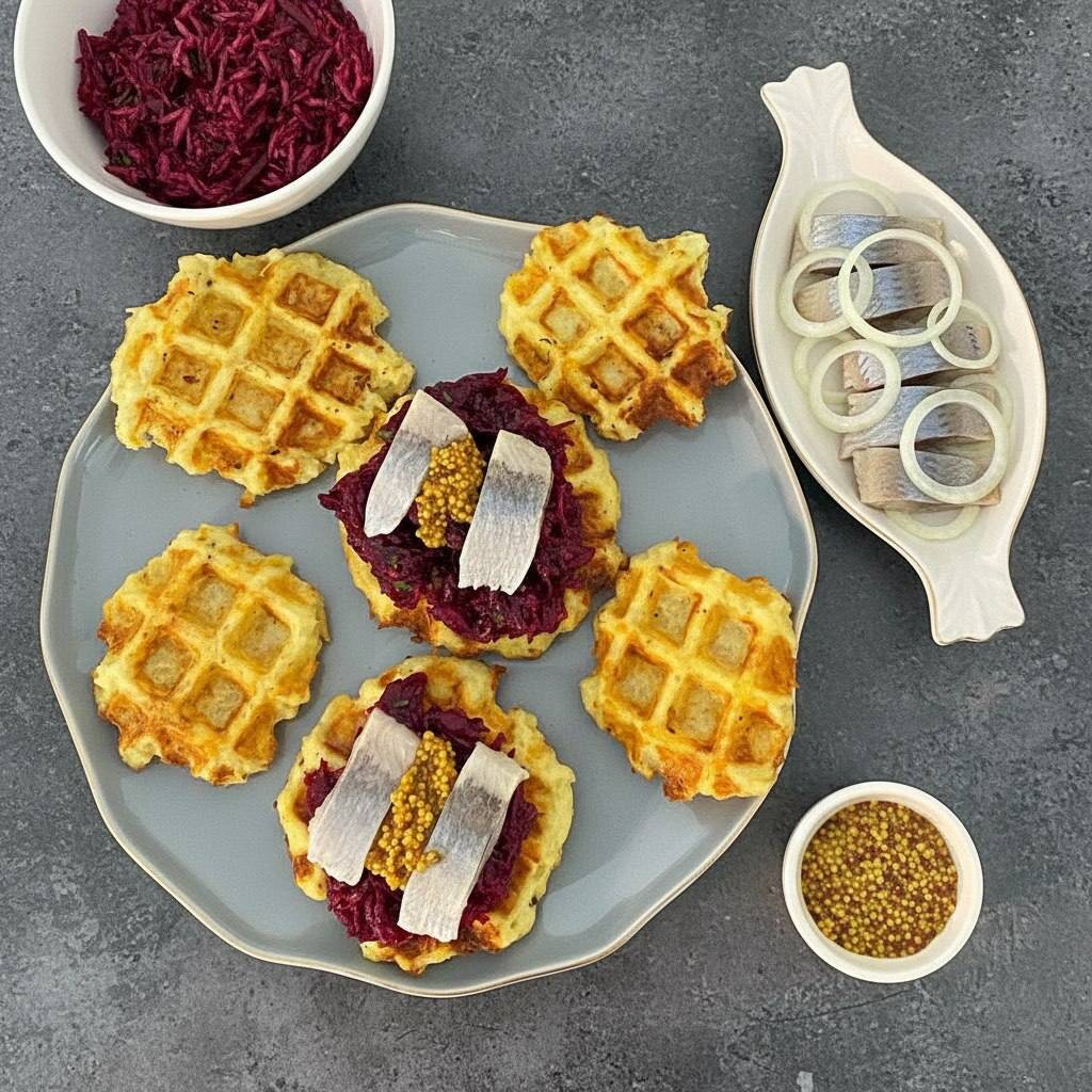 Сегодня приготовила отличный ужин из остатков — пять отварных картофелин и две отварные свеклы. Легко и непринужденно я сделала картофельные вафли с насыщенной свекольной намазкой и добавила немного селедки. Получилось очень вкусно, сытно и безотходно 🤩 Вот ещё один рецепт картофельных вафель: Ингредиенты: - Отварной картофель — 5 шт. - Яйца — 2 шт. - Мука — 3-4 ст. ложки - Соль, перец — по вкусу - Масло для смазывания вафельницы Приготовление: 1. Размять картофель в пюре, добавить яйца, муку, соль и перец. Хорошо перемешать до однородной массы. 2. Разогреть вафельницу и смазать её маслом. 3. Выложить тесто и запечь до золотистого цвета, примерно 5-6 минут. 4. Подавать с свекольной намазкой (отварная, натертая на мелкой терке свекла + чеснок + зелень + майонез /йогурт/сметана) и кусочками селёдки. Сохраняйте и готовьте с удовольствием ❤️