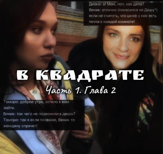 Татьяна вышла из ванной и сразу поймала на себе пристальный взгляд Дианы. Татьяна: ты что-то хотела? Диана: а… я… да! Расскажите мне о… психологии? Лиза оторвалась от книги и взглянула на сестру. Татьяна: конечно, только… чуть позже, хорошо? И отошла в сторону, позвонив кому-то. Диана: хорошо. Лиза (шепотом): ты чего задумала? Диана: что бы поймать Татьяну, надо сначала с ней поговорить и втереться в доверие. Лиза с осуждением посмотрела на сестру, забрала у нее свою книгу и продолжила читать. Родители в это время были на кухне. Даша встала со стула и начала убирать со стола. Веник подошел к ней и приобнял за талию. Ненадолго повисло молчание. Даша (резко): нет, я так не могу! У меня ощущение, что как только ты меня поцелуешь-появится Татьяна. Веник: ну она же только что ушла. Даша: а мне кажется, что она щас из шкафа вывалится. Как скелет в шкафу. Твой. Веник: Дашунь… Даша: либо надо просто смириться, что у нас не получится побыть вдвоем, пока она живет здесь! И ушла