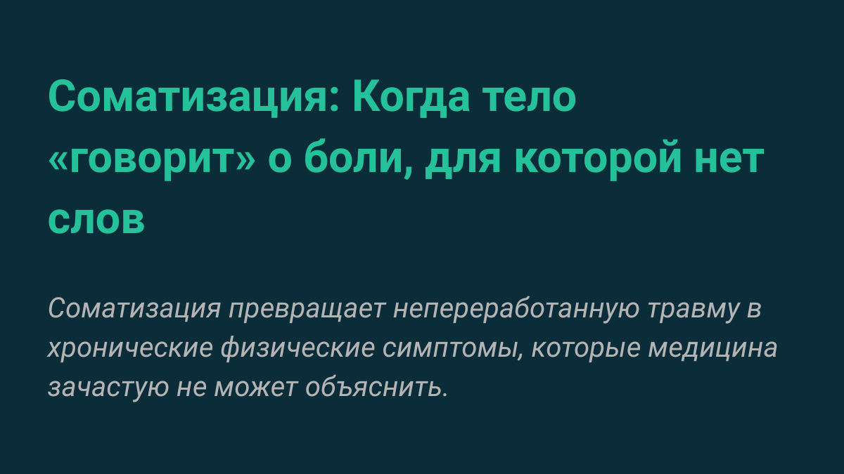 Соматизация: Когда тело «говорит» о боли, для которой нет слов