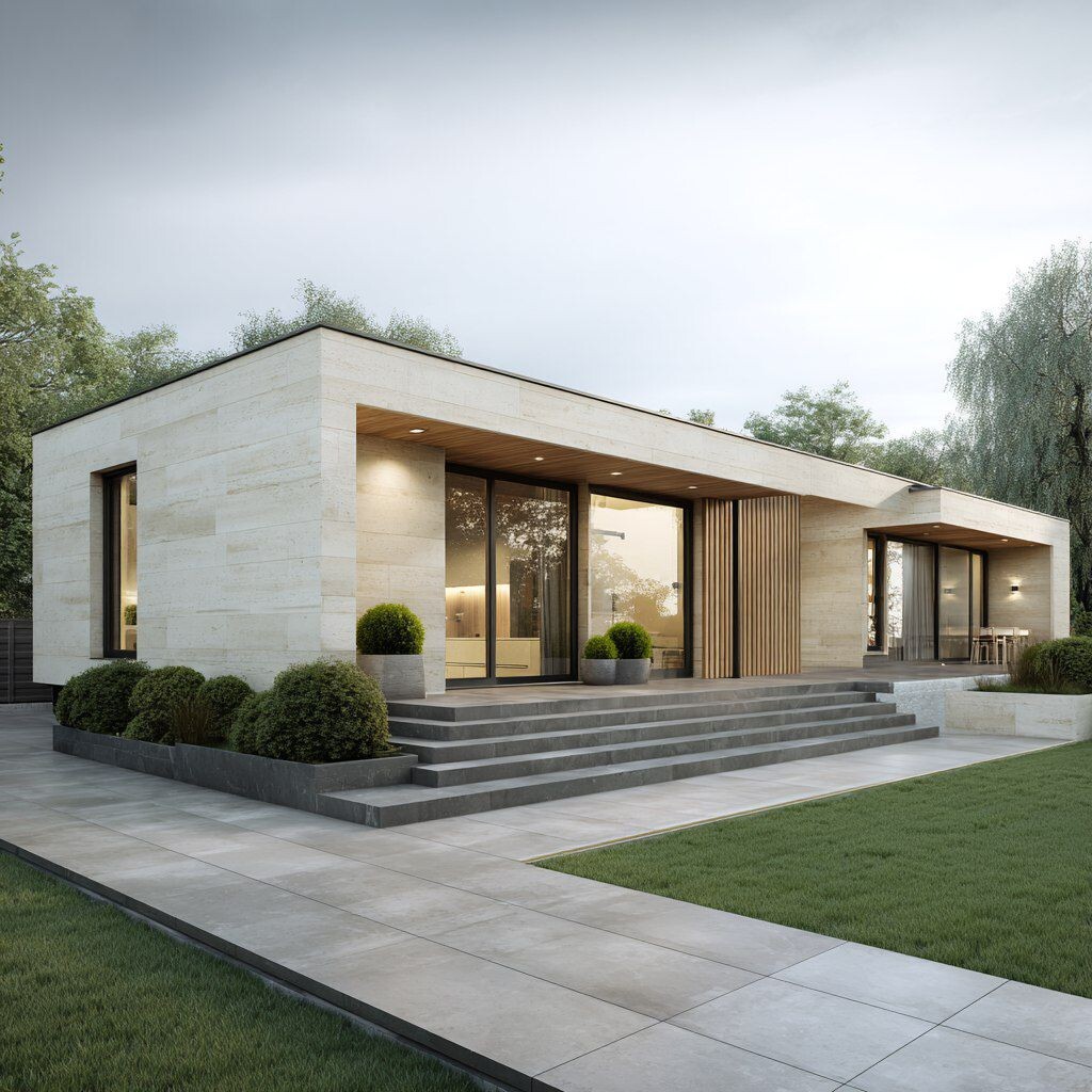 Мы в процессе создания альтернативной фасадной концепции для проекта в похожей архитектуре, с сохранением общей геометрии, но с глубокой переработкой материалов. Работаем строго в рамках ваших площадей и спецификации! 🎨 Концепция фасада: ▪️ Основной фон — тёплая минеральная/акриловая штукатурка светлого бежевого оттенка по системе мокрого фасада. Заменит плиты Archskin и керамогранит на глухих участках и торцах. ▪️ Акцентные плоскости — вместо жёстких плит Archskin и Vitra Quarstone используем гибкую керамику Phomi в крупных цельных картах (600–800 мм). Материал разместится на тех же плоскостях, что и плиты в исходной спецификации, чтобы не нарушать архитектурный ритм. ▪️ Металлические рейки — тонкие вертикальные и горизонтальные профили (40×20 или 50×20) в тёмном графите RAL 9005 или с текстурой под дерево. Расставляем группами по 3–5 штук по краям блоков из Phomi и на углах, заменяя деревянные рейки и ЛДСП. 📐 Узлы применения материалов: ▪️ Цоколь и входные порталы — сохраняем