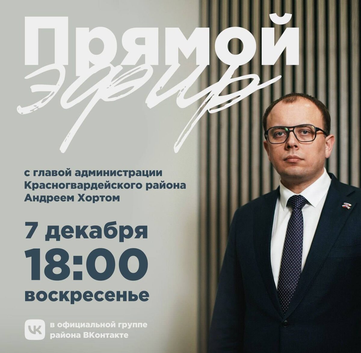 🔴 Через 10 минут начнётся прямой эфир с главой администрации Красногвардейского района Андреем Хортом