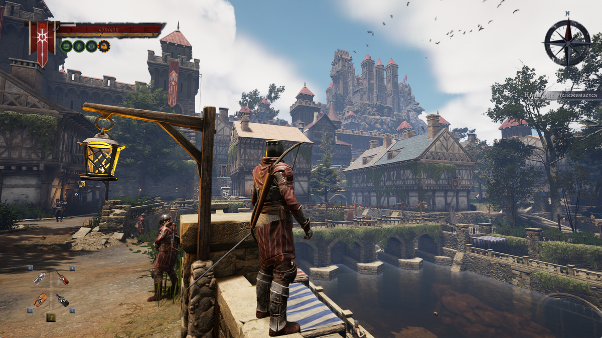 Потом попадаешь в город, и он тоже огромный. Вот только в нём даже указателей нет, поэтому игроку предстоит второй урок навигации. И только после прохождения первого акта, большую часть которого игрок будет выполнять побочные квесты из разряда «пойди туда, не знаю куда», Тристан найдёт набор картографа и сможет постепенно зарисовывать карту, посещая возвышенности. После этого жизнь наладится, и играть станет намного комфортнее, так как появится понимание того, как разные приметные локации располагаются относительно друг друга.