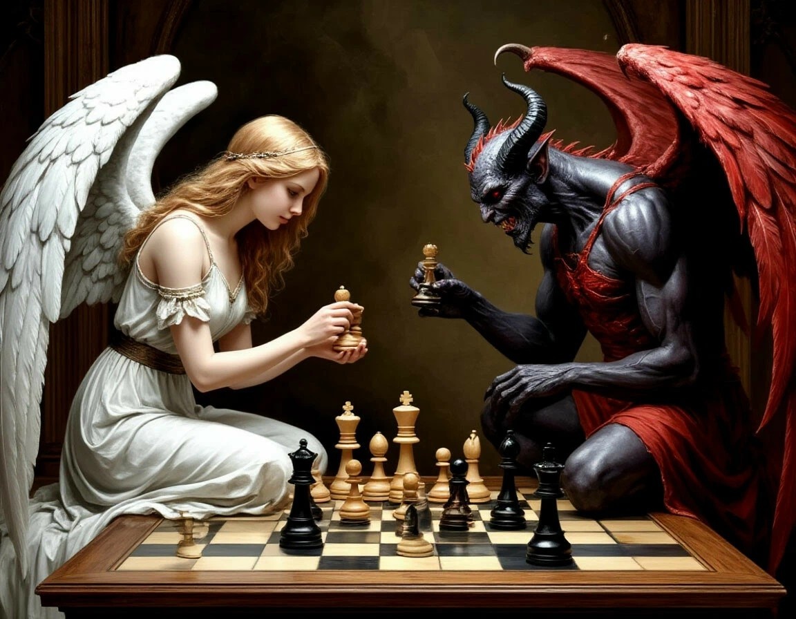 Я думаю о многом В диалоге с дьяволом и Богом. Это происходит со мной – Разговор с Господом и сатаной. Я состою из одинаковых частей, Слышу ангелов и вижу чертей. И только одно мне поможет – Повторяю: я – человек Божий. Этот мир такой огромный, Никто мне не кумир, Дышу ровно, смотрю в семью, В основном, в свою. Почти не ругаюсь, почти не курю, Почти не пью. С людьми дружу или стараюсь очень, Дни мои длиннее стали И короче ночью. Не обижаюсь, я отхожу очень быстро, Но, как я не пытаюсь, лезут в голову мысли. Почему кто-то больше меня имеет, а? Повезло козлу, не работает, не потеет, Капитал его множится, а мой сквозь пальцы тает, А он и не тревожится, просто зла не хватает. Ходит, задрав нос, не наказан и поныне, Вот где без ответа вопрос, вот где гордыня. Застрелить бы его, но только пустая кобура. И куда же смотрят силы добра, а? Но надо в свой карман смотреть и в свою душу, И, если надо, за своё умереть, не выпячивая наружу Всё это бренное, эфемерное, Всё, что мы сами при
