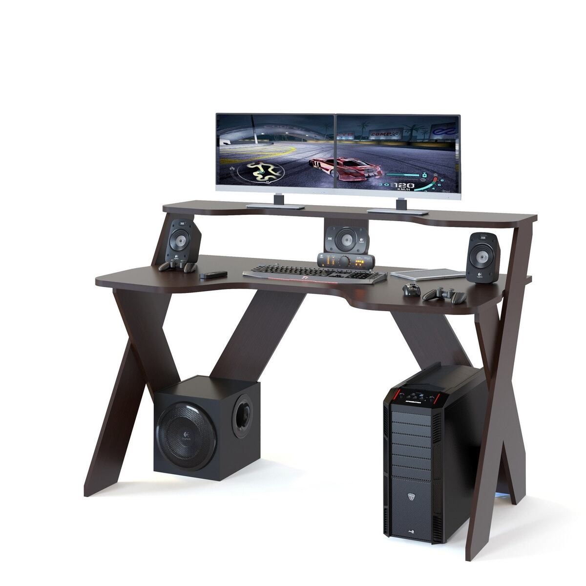 - Двухтумбовые компьютерные столы — это классика жанра и царство порядка. Две вместительные тумбы (часто одна с ящиками, другая с полкой или шкафчиком) обеспечивают огромное пространство для хранения. Такой стол – самостоятельный рабочий остров, идеальный для домашнего офиса, где нужно держать под рукой много вещей. Если вам нужна основательность и максимум ящиков, присмотритесь к двухтумбовым компьютерным столам.