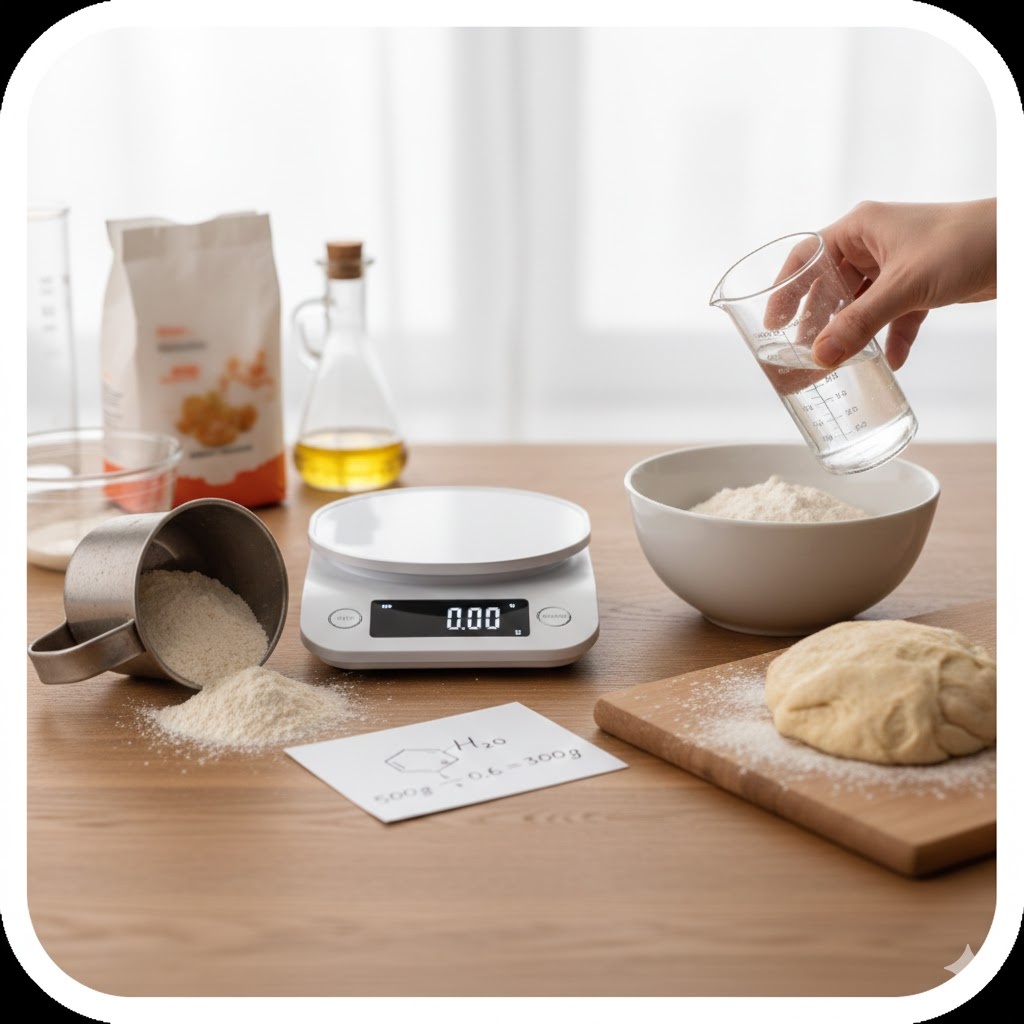 **Почему мерный стаканчик — это враг выпечки, и идеальные пропорции гидратации.** Если вы хоть раз выбрасывали тесто, которое оказалось слишком липким, слишком сухим или просто "не подошло" — вы стали жертвой распространенной ошибки: **измерения по объему, а не по массе**. В выпечке, в отличие от обычной готовки, нет места приблизительности. Использование точных граммов — это не прихоть шеф-поваров, а финансово выгодный и научно обоснованный подход. Этот "Граммовый Код" поможет вам навсегда забыть об испорченном тесте и сэкономить до 50% муки, которую вы обычно добавляете "на глазок". ## Часть 1. Враг точности: Физика плотности Главный враг в выпечке — это **плотность ингредиентов**, которая непостоянна. ### Проблема мерного стакана Когда вы измеряете жидкость (например, воду), 1 миллилитр всегда весит 1 грамм. Но когда вы измеряете сыпучие продукты (мука, сахар, какао), их вес в одном и том же объеме сильно меняется. * **1 стакан воды** = всегда 240 граммов. * **1 стакан муки