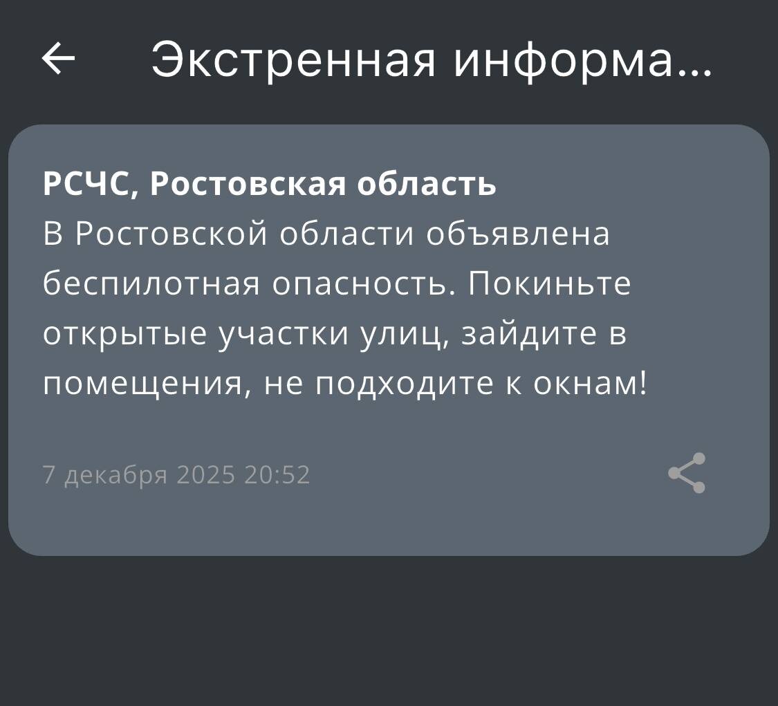 ‼️ В Ростовской области объявлена беспилотная опасность