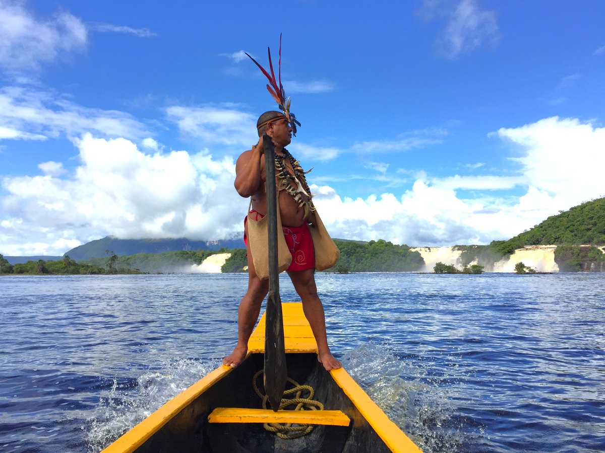 Я с еще одной туристкой, жительницей Каракаса, студенткой медицинского университета, и гидом отправились к водопадам на лодке-куриара (индейское каноэ).