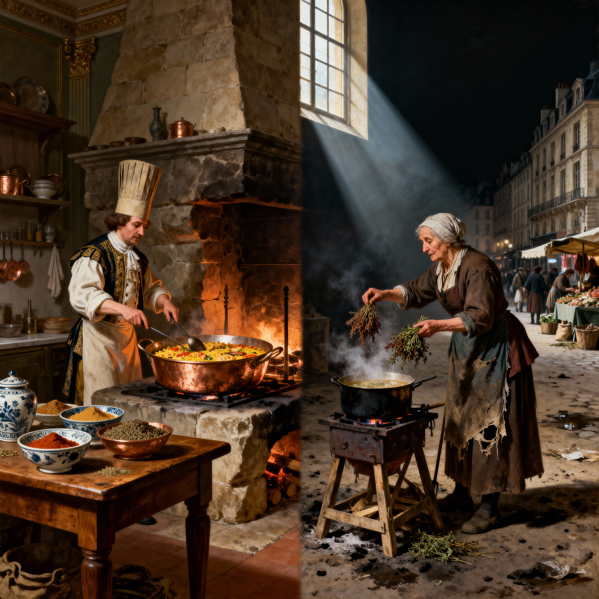 На кухне графа де Сансера пахло раем и адом одновременно. Повар Жак, с лицом, красным от жары очага, одной рукой помешивал тушёного павлина в винном соусе, а другой — словно священник, совершающий таинство — щепоткой, кончиками пальцев, всыпал в блюдо тёмный порошок. Рядом, на дубовой столешнице, лежали невзрачные, сморщенные палочки и сушёные почки, больше похожие на мусор, чем на еду. Но граф только что отдал за этот вязаный мешочек целое поместье с двадцатью крестьянами. В это же самое время, на грязной рыночной площади Парижа, старая Марго варила похлёбку для нищих и бросила в кипяток охапку сушёной, горькой полыни и дикого тмина. Оба — и граф, и старуха — искали одного: волшебства, способного преобразить свою жизнь. И оба его нашли. Основная часть:
