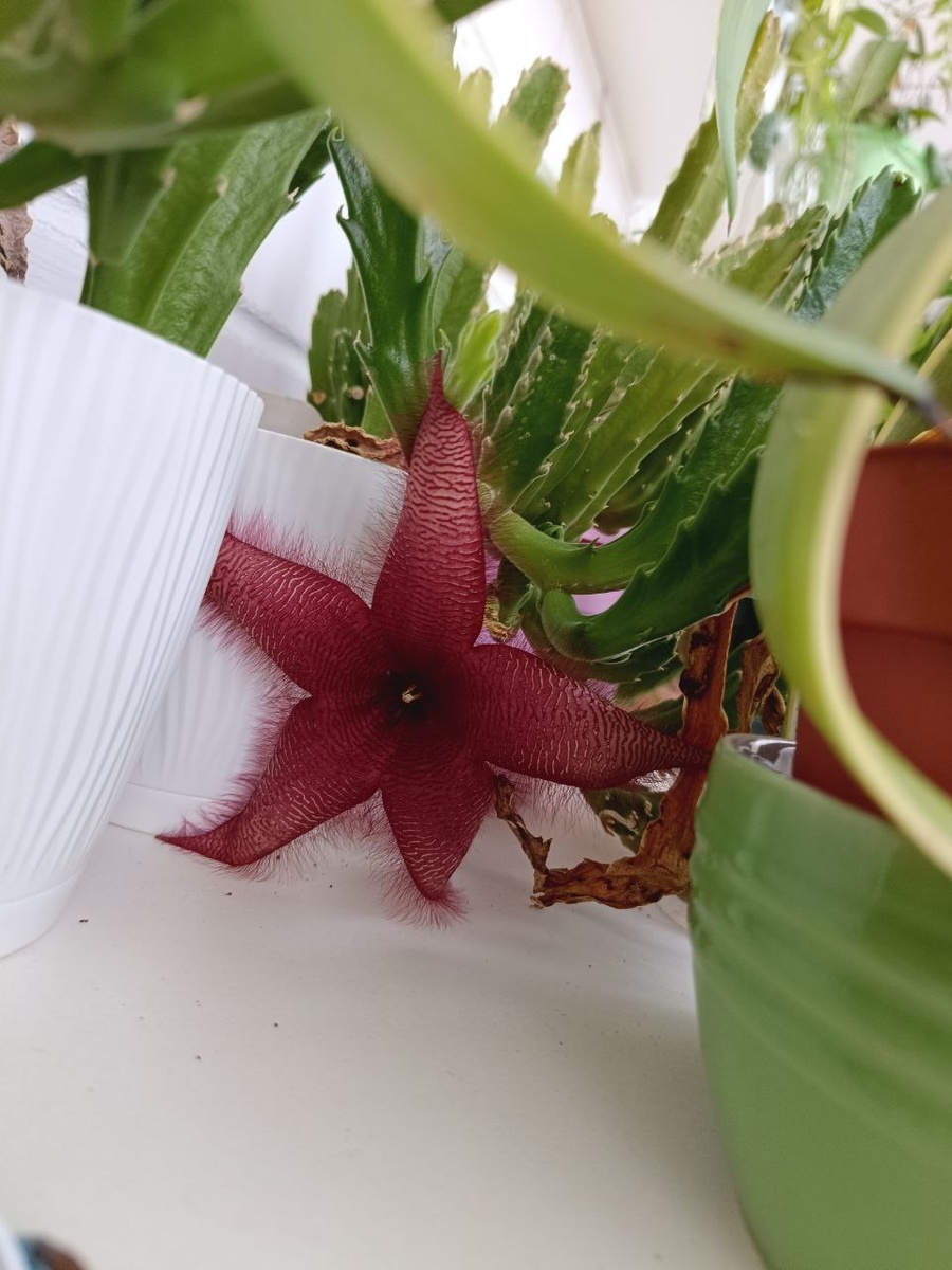 Случайно обнаружила, что стапелия грандифлора снова цветет