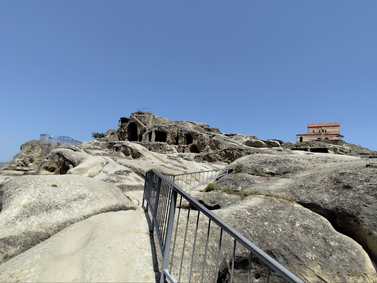 Мы в Уплисцихе. Выходим из автобуса… и встречаем на парковке Георгия - он привёз сюда другую экскурсионную группу. Как интересно получается: ты ещё не успел осознать до конца, что приехал в другую страну, а уже встречаешь там знакомых! И вновь пример грузинского гостеприимства и радушия! Георгий интересуется, удалось ли нам поужинать и всё ли в порядке. Подобное отношение характерно скорее для хороших знакомых или приятелей. Но мы… Мы только вчера познакомились! И в таких проявлениях вся Грузия: удивительная и прекрасная. Но мы на экскурсии. И времени у нас в обрез. Поэтому, обменявшись с Георгием буквально несколькими фразами, мы спешим за Викторией, которую, кстати, Георгий очень ценит за профессионализм. И она ведёт нашу группу к колыбели грузинской государственности – древнему скальному городу Уплисцихе, который был основан в конце II тысячелетия до н. э. и населяли его картвелы. Это название со временем стало общим самоназванием всех грузин – картвелеби (ქართველები). Скальный же