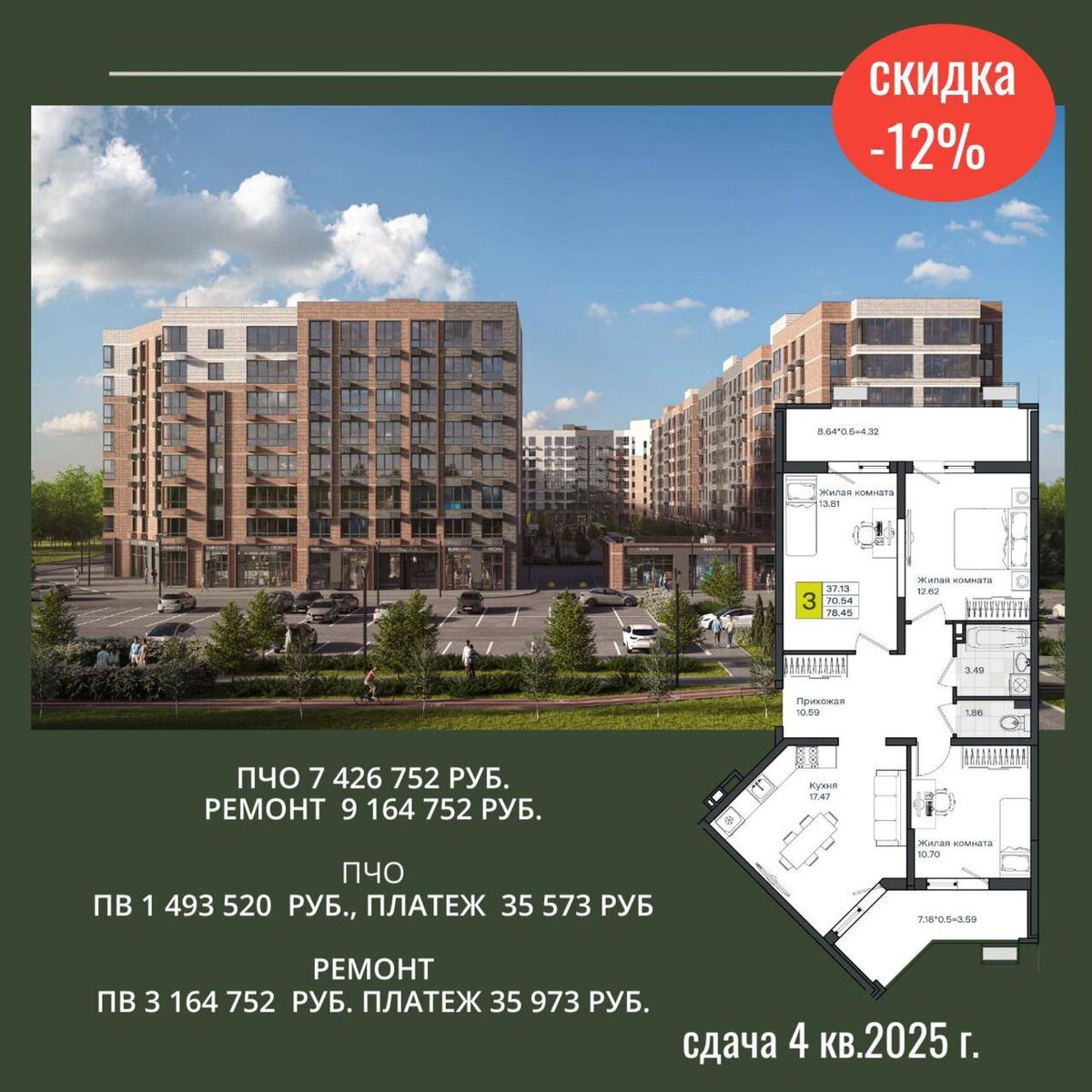 Завершается строительство ЖК Моно 🤗 Сегодня на обзоре 3к квартира по самой первой цене в Краснодаре. 78 м2 за 7.5 млн рублей 🎉 Отделка предчистовая Первый взнос - 1.5 млн рублей Платеж в месяц - 36 000 рублей Сдача - январь 2026 года Расположение - Молодежный 2, Березовый. Надо брать - +79384280210 Оставьте заявку через наш бот @AN11_bot Подписаться | Консультация В этом посте есть большое видео, которое не загрузилось в Дзен. Откройте оригинал поста в телеграме, чтобы его посмотреть