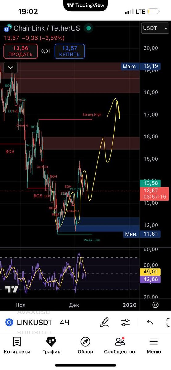 LINKUSDT 🫰 Добавим Лонг сделку: Тейк - 16$ Стоп - 11.58$ Соблюдайте риск менеджмент!☝️