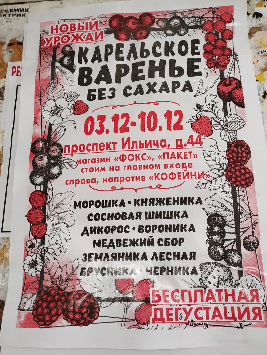 Весь город сейчас обклеен разными объявлениями. Объявления на улицах повсюду: на специальных стендах, на столбах, на павильонах на остановках общественного транспорта, на стенах домов: Вот это я фотографирую на щите у входа в подъезд. Чем именно оно привлекло моё внимание? В первую очередь тем, что неожиданно выделяется среди прочих давно привычных многочисленных объявлений строителей, работодателей и мебельщиков. И самое важное: варенье без сахара - это как? Просто сварили карельские ягоды и...? Разумеется, это просто обман. Ну, а перечень ягод какой впечатляющий! Морошка, княженика, вороника. Большинству дончан они неизвестны. Ну, а я знаю , что из них наиболее распространена в северных регионах Большой России только первая. А две другие - это довольно большая редкость. Потому задаю логичный вопрос: что под видом княженики и вороники в банки положили? Безусловно, что-то самое недорогое. Конечно, же кто-то легко поддался на эти незатейливые уловки продавцов-мошенников и купил