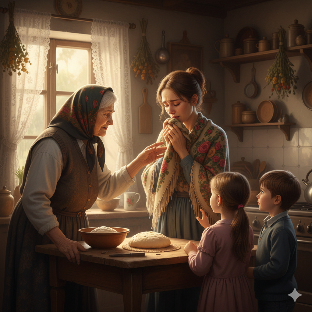 — Это... откуда? — Я взяла платок. Он был мягкий, тёплый, пах чем-то знакомым. Детством. Деревней. Печным дымом.