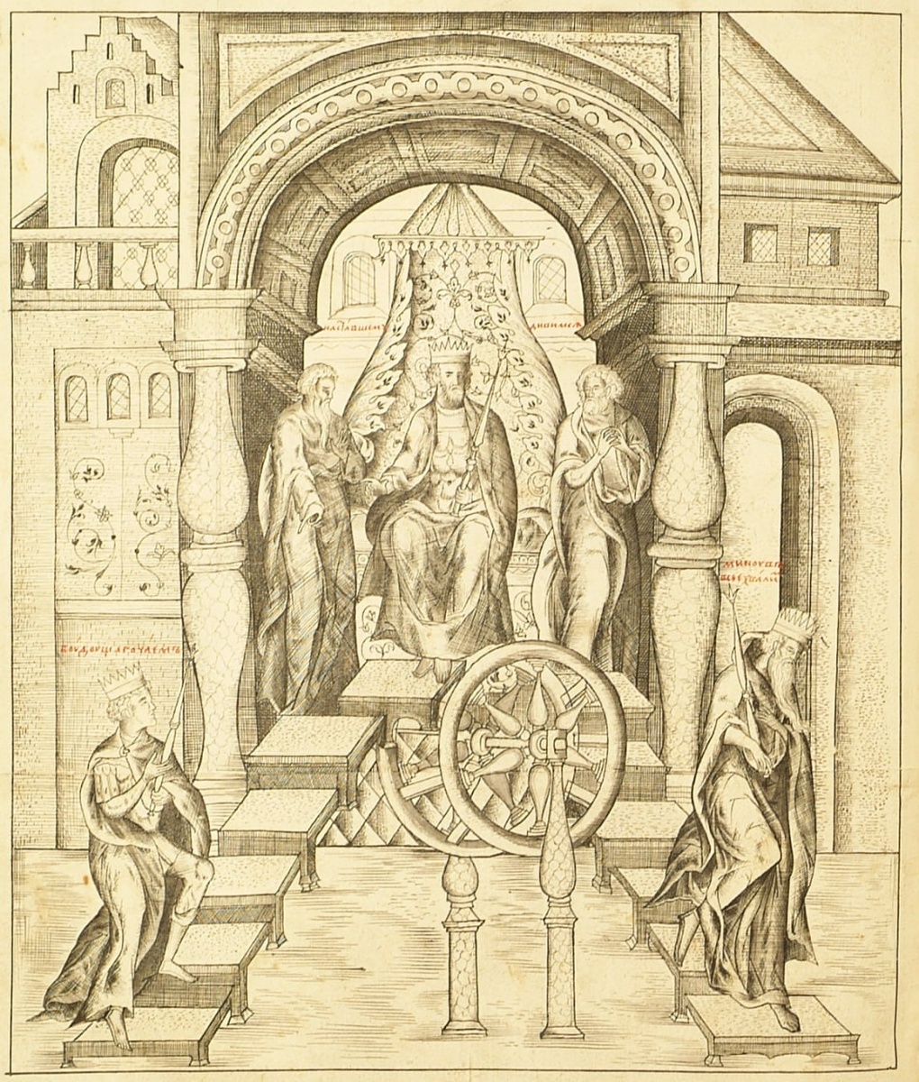 НЕДЕЛЯ ВОЗРАСТА В ЗЕЛО! Коло четверовременное. Колесо Фортуны – образ изменчивой удачи и быстротечности земной жизни, – сюжет, широко распространенный в средневековом искусстве. На вершине вращающегося колеса восседает царь со скипетром, с противоположной от него стороны упустивший удачу – колесо проезжает прямо по нему, по сторонам от царя две фигуры – поднимающаяся и спускающаяся по колесу, обозначающие движение к счастью и его потерю. Иногда фигуры людей на колесе могут быть разного возраста (1-3): восходит к вершине юноша, восседает на колесе муж, спускается старец – колесо может обозначать не только сиюминутную удачу, но и быть образом всей человеческой жизни.