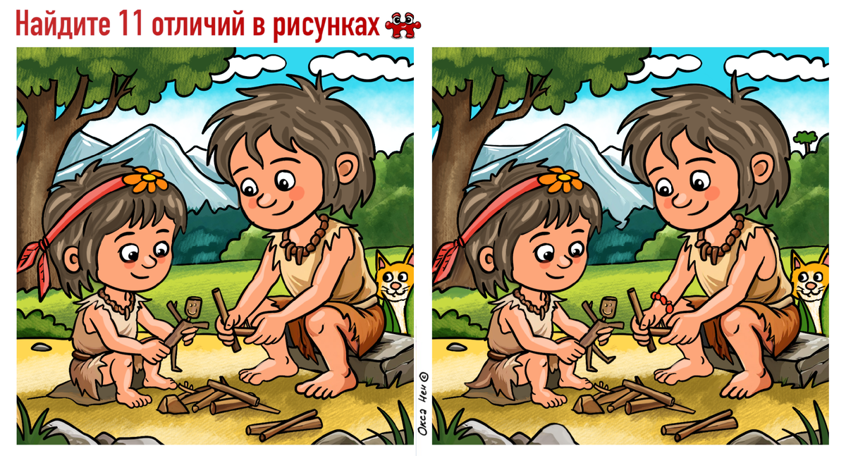 Рыжика сегодня любопытство занесло то ли в какое-то африканское племя, то ли в далекое прошлое. Давайте немного отвлечемся и вместе с Кешей соберем 11 припрятанных на картинках непростых отличий. Удачи! И хорошего настроения от меня и котейки. Горизонтальная картинка: Вертикальный тест: Ответ: