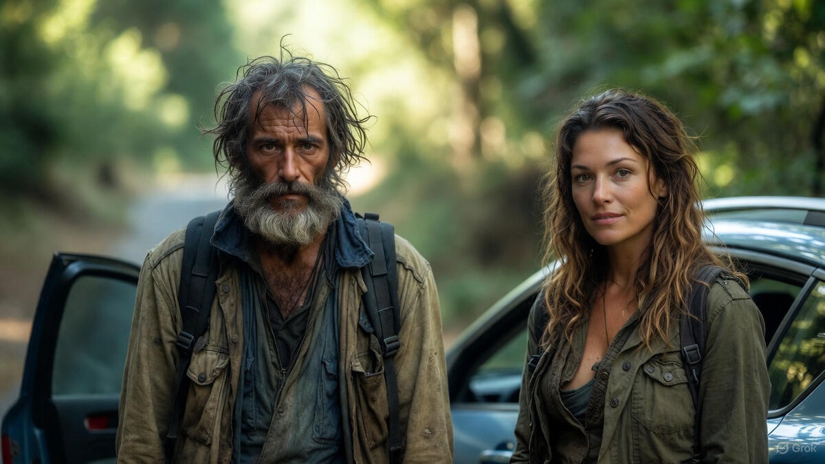 Вика вздрогнула, чуть не выронила телефон и резко обернулась. За ее спиной стоял молодой привлекательный парень с большими светло-зелеными глазами. Он внимательно смотрел на женщину. На нем была потрепанная куртка, шапочка и рваные джинсы. Недельная щетина и стершиеся в пыль старые кроссовки завершали образ бездомного бродяги. Именно так выглядел ее внезапный спаситель.