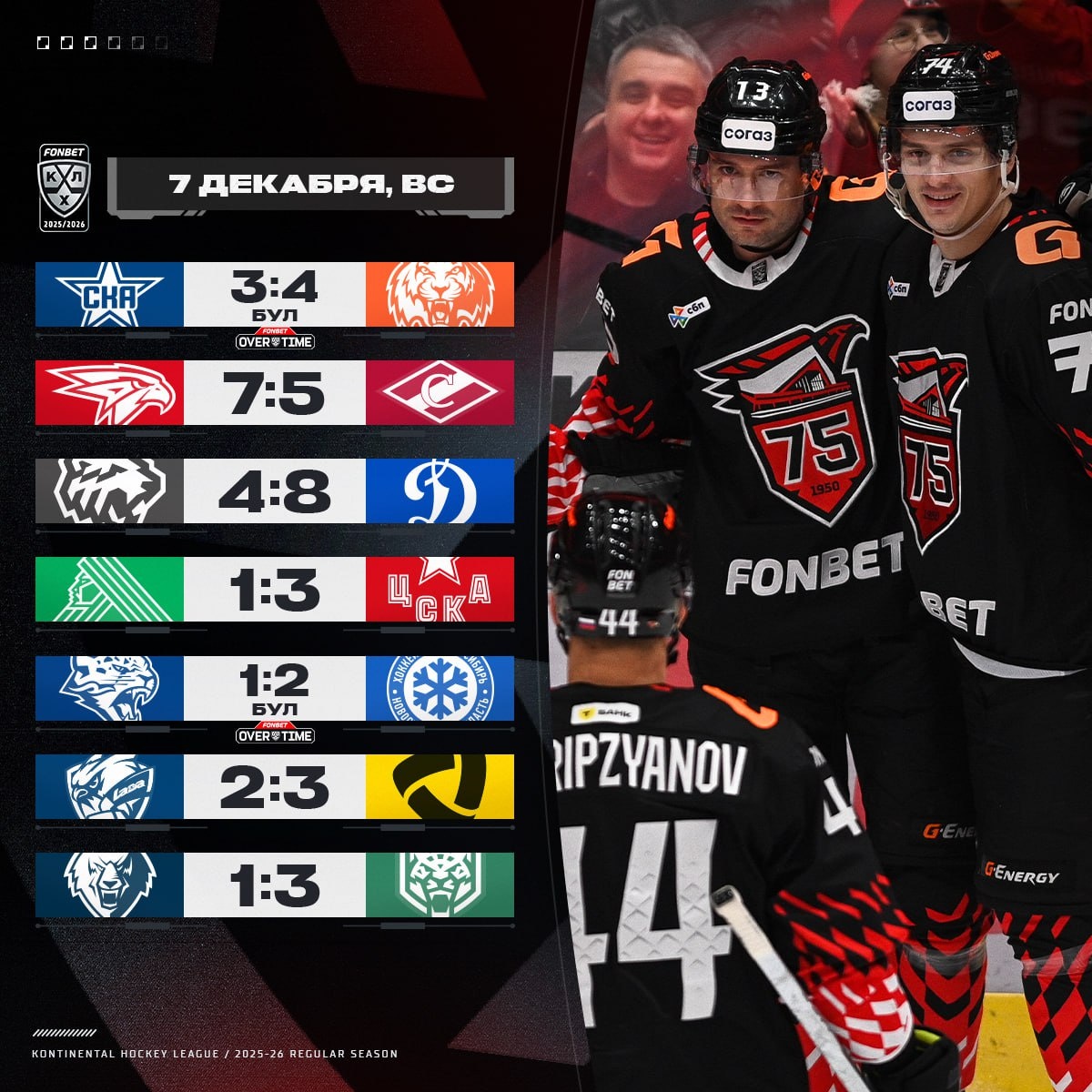 В Омске и Челябинске забросили по 12 шайб, Никита Гусев набрал 6 очков, «Ак Барс» снова выиграл дерби Татарстана