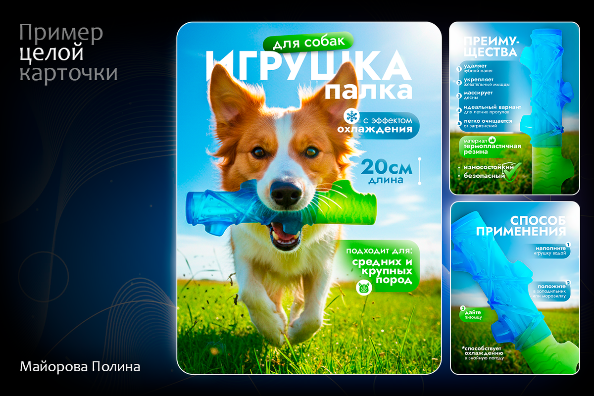 Сделала кейс для маркетплейса в нише зоотоваров. Товар — игрушка-палка с охлаждающим эффектом