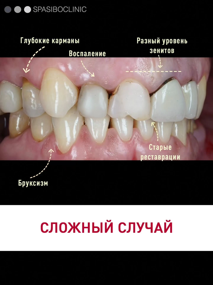 ⚖️ Обычные реставрации в таком прикусе будут скалываться, но время ограничено. Нужно обойтись без ортодонтии.