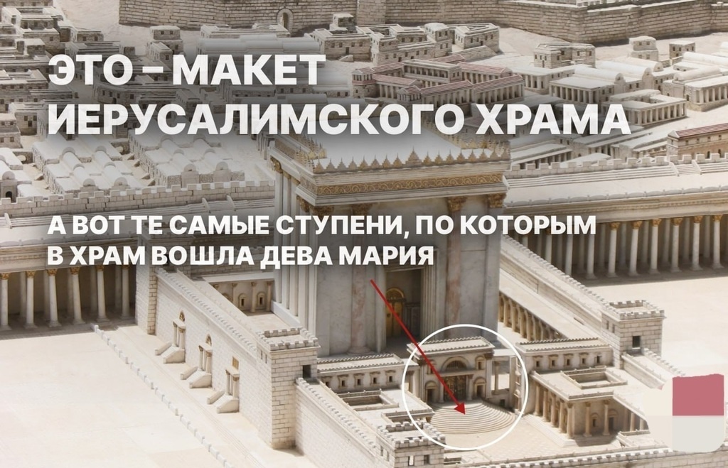 ЗНАЕТЕ ЛИ ВЫ ЧТО... ...ступени, по которым поднималась маленькая Мария были высокими, и их преодоление было непосильной задачей для трехлетней девочки, но она поднялась по ним быстро, не оглядываясь и не зовя родителей, как это обычно делают дети. Волнительный день настал. Трехлетняя малышка поднимается по каменным ступеням храма. Храм — огромный. Ступени — высоченные. Их 15 — по числу степенных псалмов. Медленно поднимаясь по ним в храм, священники и остальные люди пели псалмы — на первой ступени первый, потом второй... Подниматься тяжело — а мама не держит ее за руку, девочка идет сама. Ее родители стоят позади нее и не дыша глядят вслед. А там, на пороге храма, уже протягивает к ней руки старец. По этим самым ступеням взошла в Иерусалимский храм Пресвятая Богородица. Ее родители, святые Иоаким и Анна, привели девочку в храм, исполнив свой обет — посвятить долгожданную дочь Богу. А затем произошло необыкновенное. Первосвященник по особому пророческому вдохновению привел Богороди