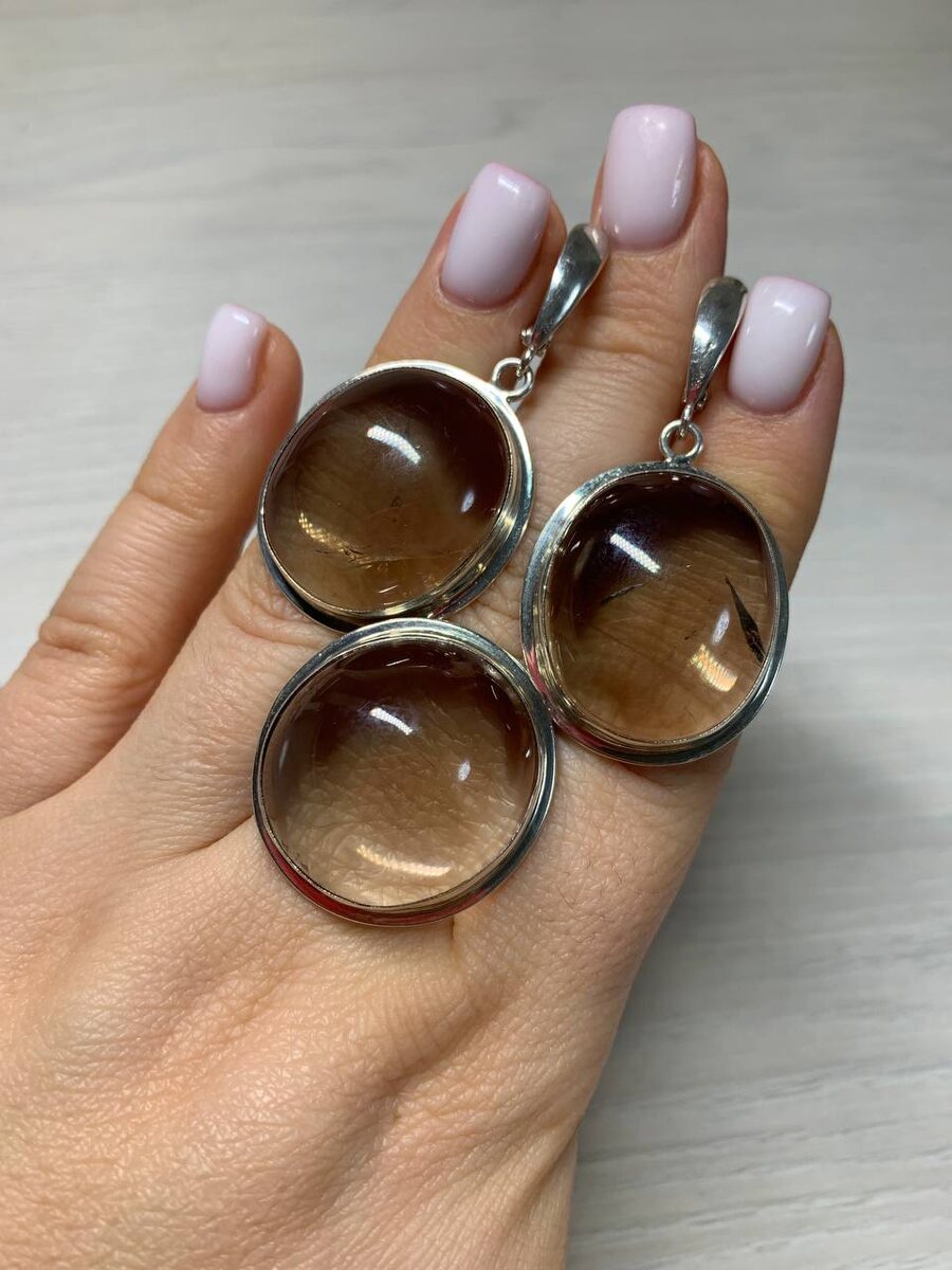 ✅СЕРЕБРО ✅РАУХ ТОПАЗ ✅ВЕС ОДНОЙ СЕРЬГИ 10,12 ✅ДЛИНА 49 мм ✅РАЗМЕР КОЛЬЦА 21 ✅ЦЕНА 6500