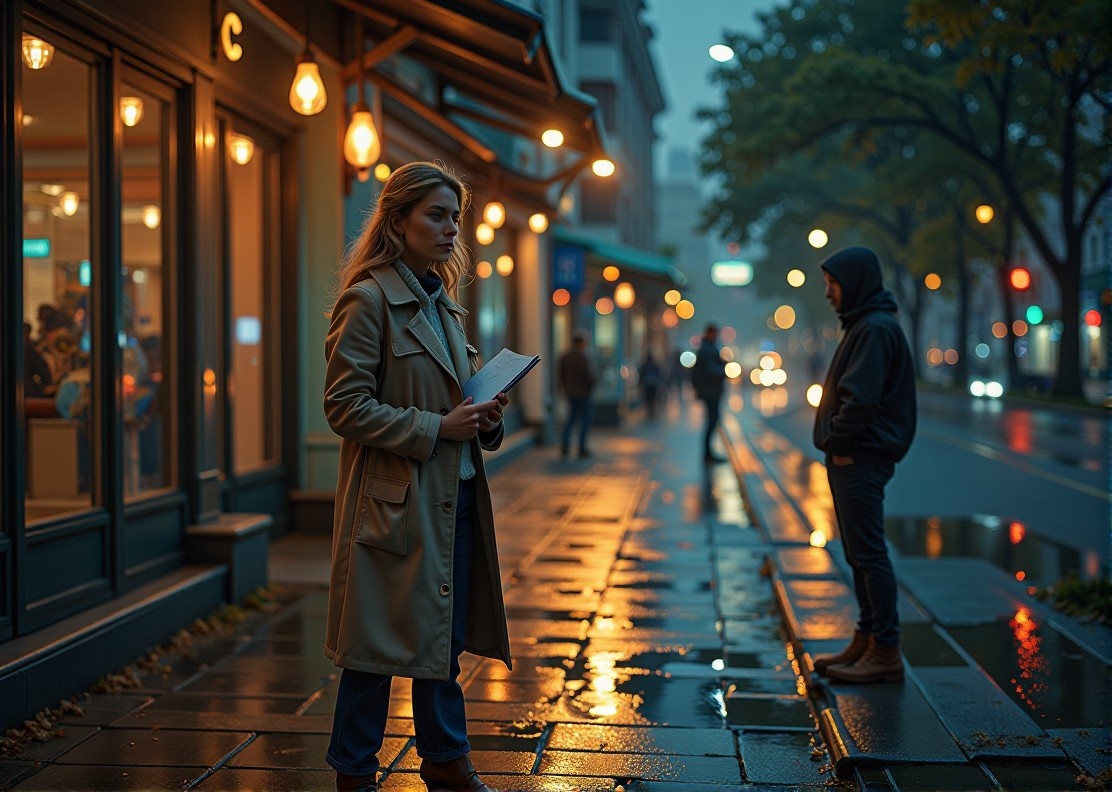 Кафе на углу было почти пустым. Тёплый свет ламп отражался в витрине, размазываясь в дождевых разводах. С улицы тянуло сыростью и бензином, внутри пахло корицей и пережаренным кофе. Над барной стойкой висели старые круглые часы с жёлтым циферблатом. Каждые пять минут они негромко щёлкали, как будто делали пометку: ещё немного, ещё одна догадка, ещё одно терпение на исходе.