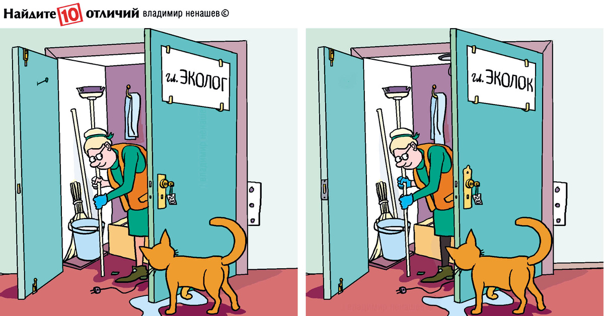 10 отличий и тест на внимание. Загадка не совсем простая, но приятная. Чистота везде нужна.