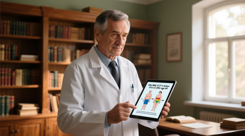И вот он, первый и самый парадоксальный совет, ломающий все наши представления. Доктор Мясников, опираясь на данные современных исследований, говорит четко: для человека после 60 лет оптимальный ИМТ — это 25-29. Да, вы не ослышались. Та самая «избыточная масса тела» по классической таблице оказывается… защитным фактором.
