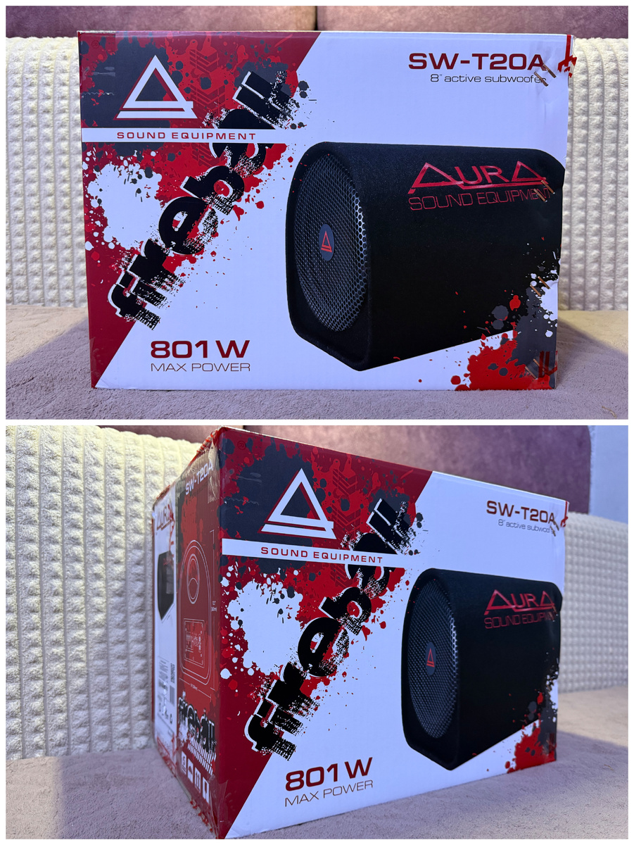 Привет Всем Сегодня хотел бы Вам показать/рассказать про активный сабвуфер AurA SW-T20A Пока заказана необходимая проводка для подключения, в этом посте посмотрим на него, рассмотрим технические характеристики, а во второй части будет подключение и прослушка И так, начнём Упаковка сабвуфера Явно производитель особое внимание уделил не только сабвуферу, но и упаковке : красочная, привлекает внимание, указаны технические характеристики и размеры корпуса сабвуфера Что входит в комплект Гарантийный талон с вписанным заводским серийным номером, небольшая наклейка Инструкция/мануал, с подробным описанием подключения и настройки Крепежные элементы : саморезы и пластинки ( если при необходимости нужно закрепить сабвуфер к полу багажника), ремень ( закрепить сабвуфер в багажнике, например если есть крепежные петли в багажнике) Сабвуфер Корпус сабвуфера : фазоинверторный(ФИ), на трубе Обшит плотным карпетом Компактный размер : 36х25х26 см, то есть много места в багажнике не займёт.Имеетс