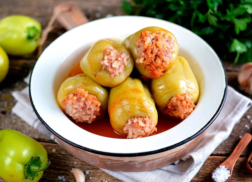 Фаршированные перцы — блюдо, которое традиционно готовится с начинкой из мясного фарша, риса и овощей. Приготовление фаршированного перца в среднем занимает примерно час, главное — потушить блюдо до нежной консистенции. Чтобы приготовить перец, фаршированный мясом, нужно заранее прокрутить фарш или купить его в магазине. Смесью из фарша с овощами и рисом нужно фаршировать болгарские перцы. Выбирайте их среднего размера, чтобы больше перцев поместилось на сковороде.