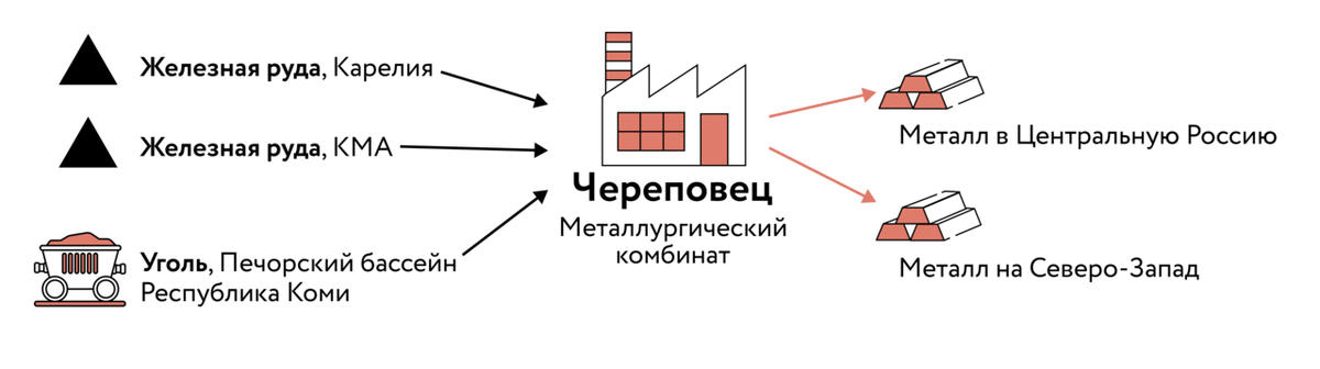 Металлургический комплекс представлен производством чёрных и цветных металлов. Главное предприятие — Череповецкий металлургический комбинат, входящий в ПАО «Северсталь». Решение о его строительстве было связано с необходимостью обеспечения металлом машиностроительных предприятий Северо-Запада России и обусловлено выгодным географическим положением: там проходит железнодорожная магистраль, по которой удобно привозить железную руду и вывозить готовую продукцию. Для металлургического производства используется железная руда с Курской магнитной аномалии (КМА) и собственные руды, коксующийся уголь, добываемый в Республике Коми. На долю комбината приходится шестая часть российской стали и проката.
