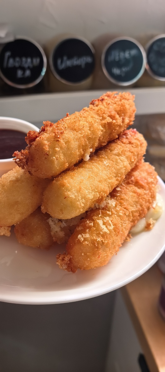 Представьте, как вы откусываете кусочек: снаружи — золотистый, рассыпчатый хруст, внутри — взрыв тягучего, обжигающе-горячего сыра. И тут же, не дав опомниться, вы макаете его в холодный, бархатный, сладкий джем... Это не просто закуска. Это — кулинарная дерзость, которая всегда вызывает азартный смех и вопрос: «А можно ещё?» Это блюдо — идеальный пример того, как кулинария играет на контрастах. Горячее и холодное. Солёное и сладкое. Хрустящее и нежное. История таких палочек началась, скорее всего, в американских пабах и итальянских пиццериях, где их подавали как сытную, весёлую закуску к пиву. Но наша версия — с джемом — это шаг дальше. Это признание в том, что сыр и фруктовый джем созданы друг для друга (вспомните грушу с горгонзолой или виноград на сырной тарелке). Сочетание, которое кажется неожиданным лишь до первой пробы. 🧀 Рецепт: Золотые палочки с текучей начинкой и ягодным джемом Секрет успеха — в трёх вещах: правильный сыр, ледяная панировка и раскалённое масло. Это г