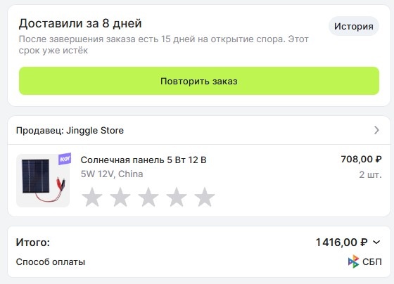 Вторая панель куплена у того же продавца, тьам у него на выбор 3 варианта: 12в 5 Вт, 12в 3 Вт и 5в 5 Вт, теперь будет 12в 3 Вт