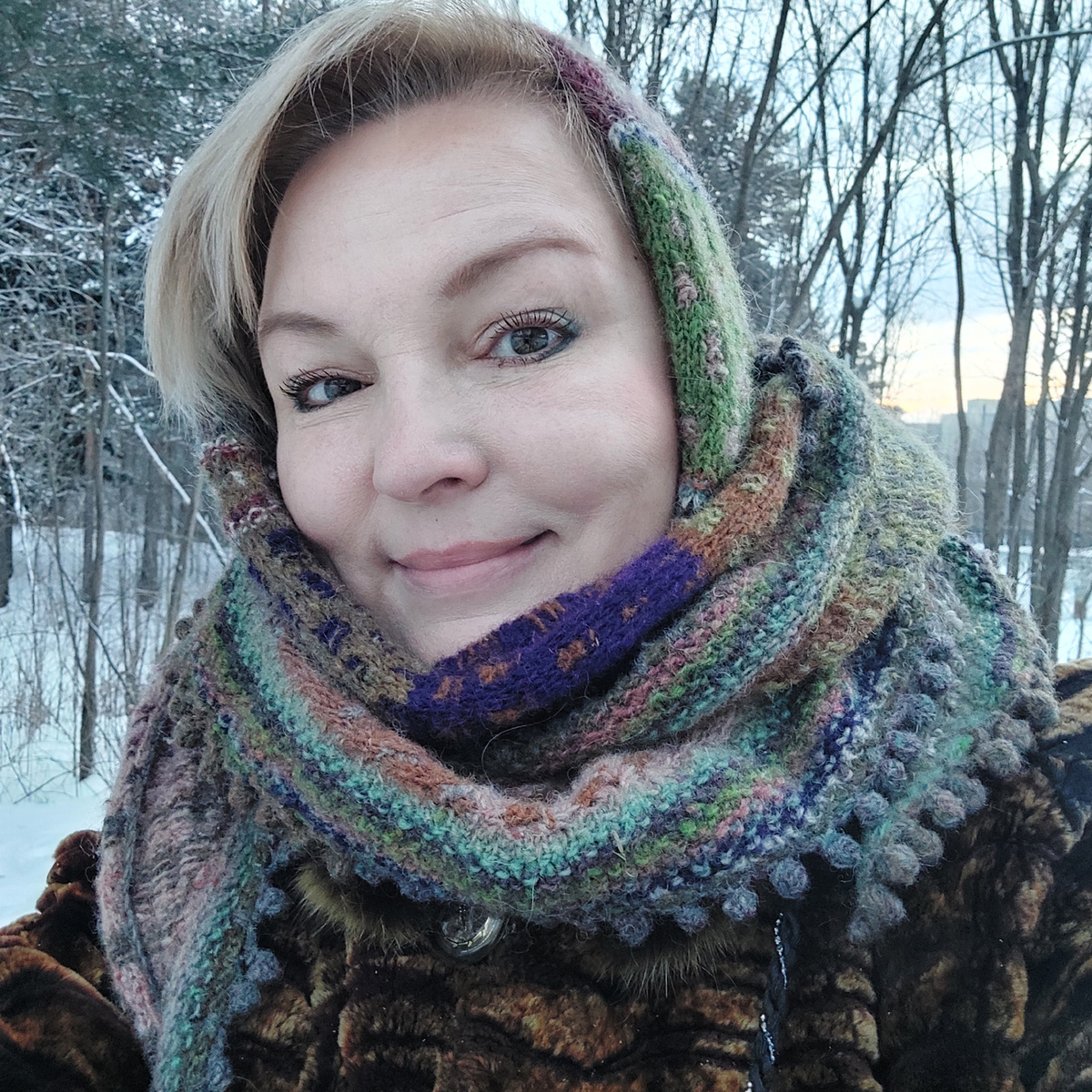 Прошло всего две недели с публикации о первом бактусе и вот опять)) Так меня зацепили эти бактусы от Андреа Моури, что закончив первое свое сочинение, сразу взялась за второе. Решила подруге в подарок на новый год связать. Опять творила (вытворяла) сама, без описаний, ищу, видимо, свой путь))) узор не меняла (но дополняла полосами "путанки" в центре) а вот расположение его изменилось... непреднамеренно, так получилось...но, как по мне, очень даже симпатично. Все таки акварельные переходы дундаги (местами в дуэте с кауни) позволяют вязать уникальные вещи, где оттенки гармонично перетекают один в другой, растворяясь в третьем и так можно "рисовать" до бесконечности. Умиротворяюшее вязание получается. По краю очередного своего неправильного бактуса дополнительно связала неширокую кайму "путанкой" опять же, и снова, как и в первом варианте, крючком декоративную кайму исполнила. Размах "крыльев" 2, 75 см, длина одного - 1, 30, второго - 1,50, так что можно закутаться от душ