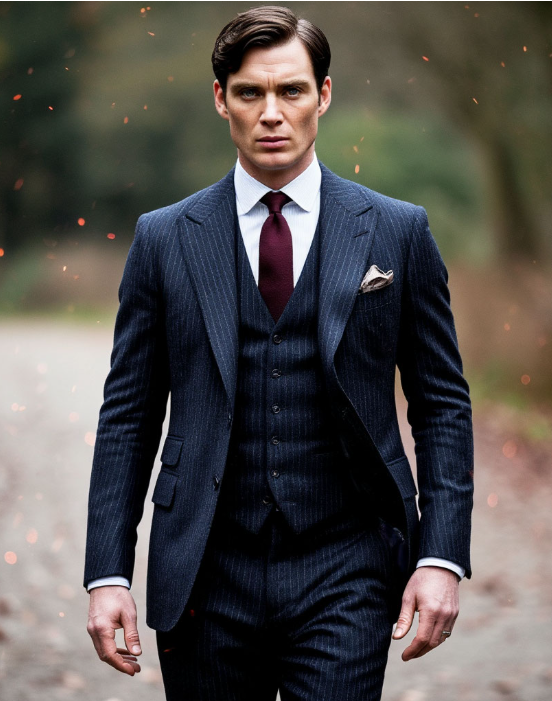 Рядом со мной стоял Шелби, как всегда элегантно одетый. На нём был тёмно-синий, почти чёрный, тонко-полосатый костюм-тройка из мягкой шерсти, который сидел на нём безукоризненно, словно сшитый по самой причудливой, но идеальной мерке. Насыщенный бордовый шёлковый галстук был завязан сложным узлом. Из-под манжет белоснежной рубашки выглядывали запонки с тёмным, матовым камнем, в котором при движении пробегали тусклые красные искорки, словно отдалённое отражение углей.