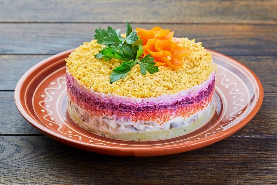 Селедка под шубой — любимый многими новогодний салат, в том числе и мой. Погрузившись вплотную в тему о правильном питании, я могу выделить как его пользу, так и вред. Вред «Селедки под шубой» Главный вред этого салата — высокая калорийность и тяжесть для пищеварения, что особенно актуально в сочетании с другими праздничными блюдами. Майонез: Традиционный рецепт предполагает обильное количество майонеза. Это источник большого количества насыщенных жиров и калорий, что вредно для сердечно-сосудистой системы и фигуры. После «шубы» с майонезом я всегда ощущала тяжесть и сонливость, что совсем не способствовало новогоднему веселью. Соль (натрий): Сельдь сама по себе соленая. В сочетании с солеными огурцами и майонезом это приводит к избытку соли в организме. Утром после застолья часто беспокоят отеки и жажда. Высокий гликемический индекс: Картофель, морковь и свекла в отварном виде имеют высокий гликемический индекс, что вызывает скачки сахара в крови. Польза «Селедки под шубой» Не стоит