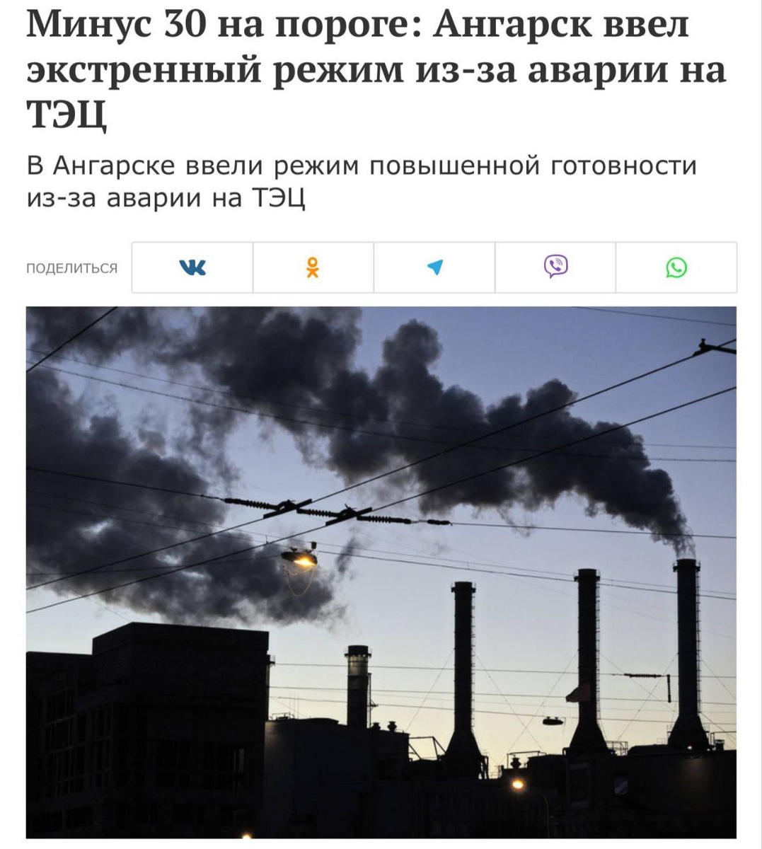 🇷🇺 В Ангарске массово отключили отопление: 1,5 тысячи домов без тепла при −15 °C 🌡️ В 200-тысячном Ангарске произошла крупная авария на ТЭЦ, сообщили СМИ. Отопление практически отсутствует в 1 546 домах, температура в квартирах едва достигает +16 °C, горячей воды нет. На улице −15 °C, в ближайшие дни ожидается похолодание до −30 °C. #Ангарск #Отопление #АварияТЭЦ °Telegram • Zen • Bastyon° ✒️Предложить новость