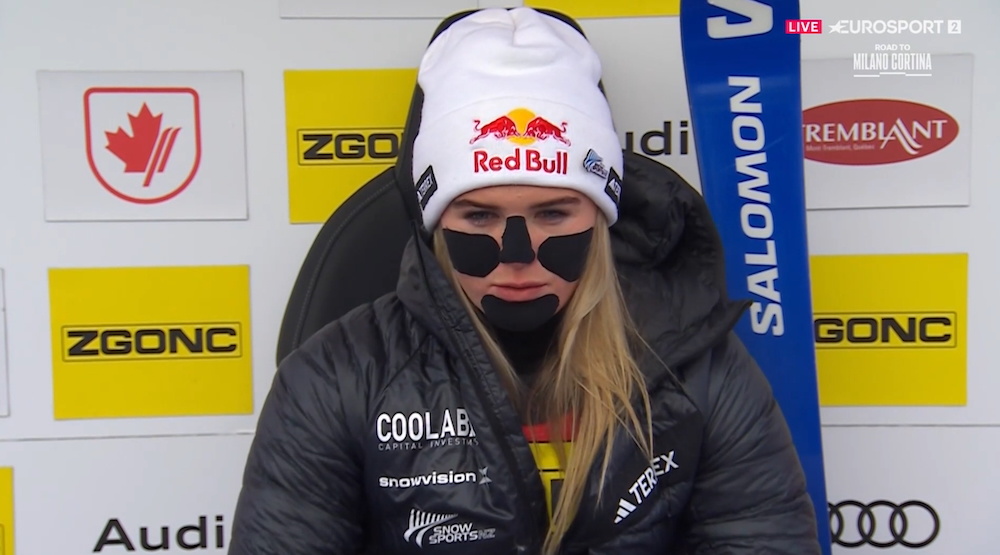Из стартовавших после 30-го номера во второй заезд прошли пять спортсменок, выше всех поднялась Сью Пиллер из Швейцарии – она стартовала 36-й и поднялась на 20-е место. К старту второй попытки незначительно потеплело, но все равно морозно, сейчас -10 °C, без ветра. Вторую трассу поставил тренер и папа Лары Колтури Алессандро Колтури. Выступающая за Албанию итальянка после первой попытки занимает 11-е место. Мы начинаем трансляцию второй попытки женского гигантского слалома. На трассе канадского курорта немного ухудшилась видимость, сейчас пасмурно, но без осадков.