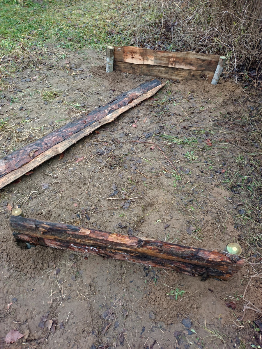 Далее сборка на месте. Вначале короткую сторону. Креплю на обычных чёрных саморезах 41. Для столбиков лунки сделал.