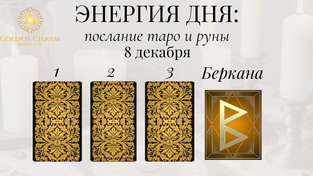 Заказать личный расклад тут✅ Прогноз на 8 декабря : что тебя ждёт Приходи на обучение Таро ✅ Выбери карту — 1, 2 или 3 — и узнай, какой путь для тебя: 1. Рыцарь Мечей Ты почувствуешь стремление двигаться вперёд, преодолевать препятствия и добиваться целей. Энергия карт подсказывает, что настало время действовать решительно и смело. 2. 8 Пентаклей Сегодня благоприятный день для продуктивной работы. Возможно, ты займёшься творческим проектом или углубишься в изучение нового навыка. Важно сосредоточиться на процессе и получать удовольствие от каждой мелочи. 3. 3 Пентаклей Тебе предстоит взаимодействовать с коллегами или партнёрами, обмениваться идеями и достигать общих целей. Это время для объединения усилий и достижения успеха вместе. Руна дня — Беркана Сегодня возможно начало новых проектов, рождение идей и реализация планов. Напиши цифру карты + БЕРКАНА в комментариях, чтобы активировать энергию. Хочешь личный расклад? Пиши — посмотрим, что ждёт тебя: Заказать личный раскл