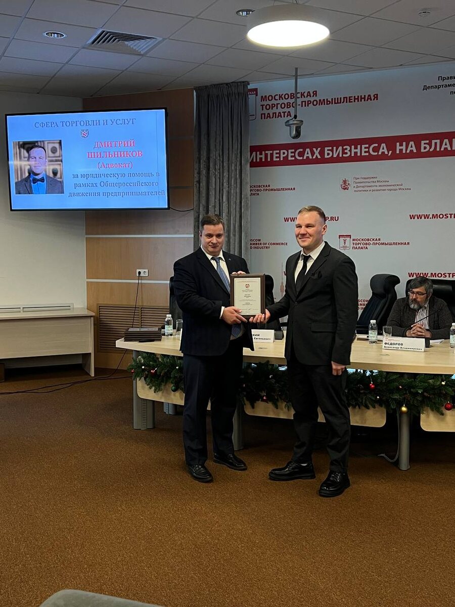 Моя работа в этом году по защите прав свобод и законных интересов предпринимателей была отмечена Московской торгово-промышленной палатой на этой неделе в вручением мне премии «Мастер разрешения долговых споров» в номинации «сфера торговли и услуг». Ежегодно в Московской торгово-промышленной палате проводится конкурс в 5 номинациях, и по результатам отбора жюри победителей в каждой из них, проходит вручении премии. Мой кейс по защите предпринимателя, в результате работы по которому административные правонарушения возбужденные на основании проведенной Прокуратурой проверки - были прекращены ❌, был направлен для участия в конкурсе в этой номинации и одержал победу в ней. Более подробно про вручении премии в номинациях уже опубликована статья в МТПП на сайте, ссылка 🔗 здесь: https://mostpp.ru/news/podderzhka-predprinimatelstva/ot-tsifrovykh-produktov-do-dolgovykh-chudes-v-mtpp-nagradili-masterov-razresheniya-dolgovykh-sporov/. #адвокатдмитрийшильников #заметкистоличногоадвоката