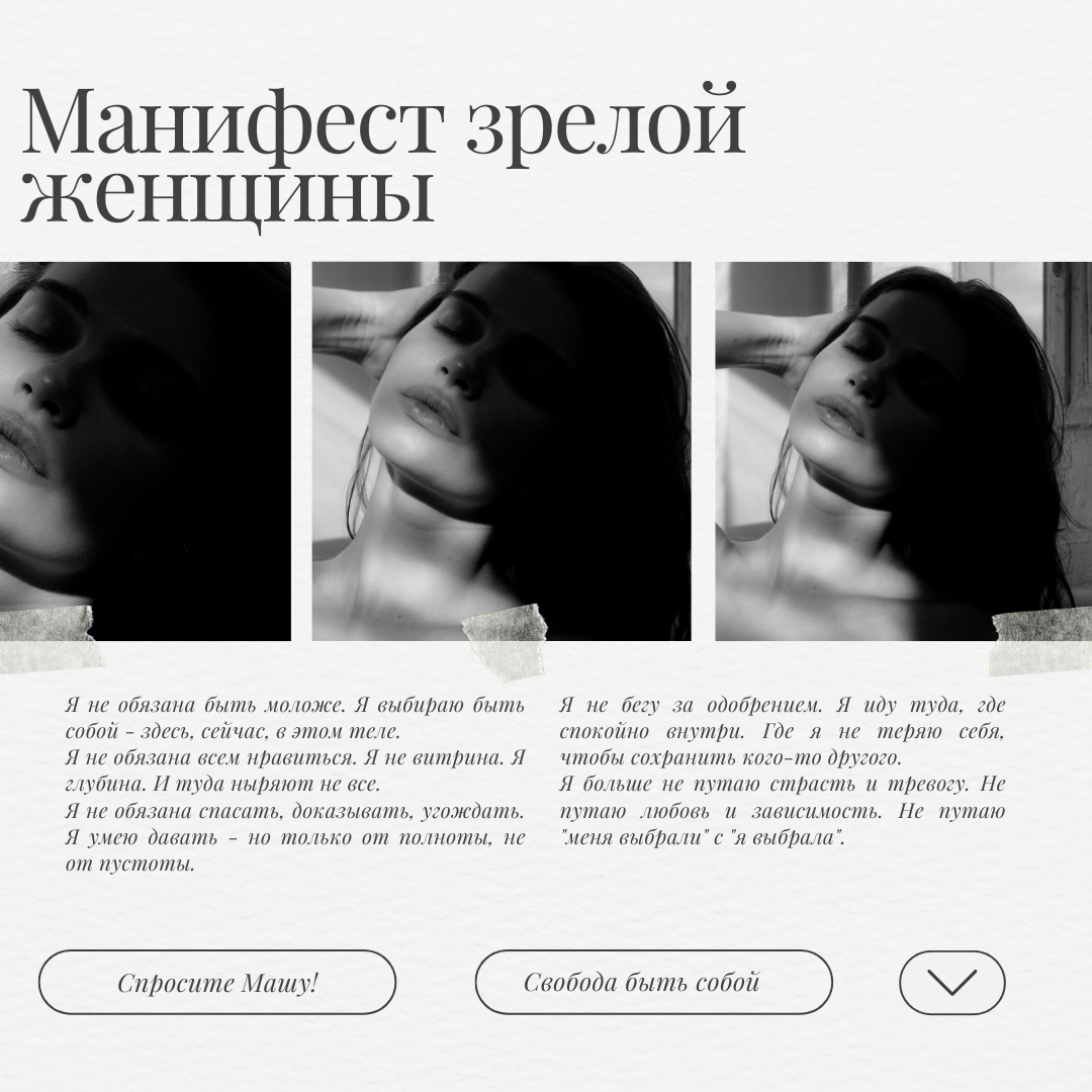 Тебе не поздно. Тебе не рано. Тебе - вовремя. С этого места - и начинается твоя настоящая жизнь. Манифест Я не обязана быть моложе.
