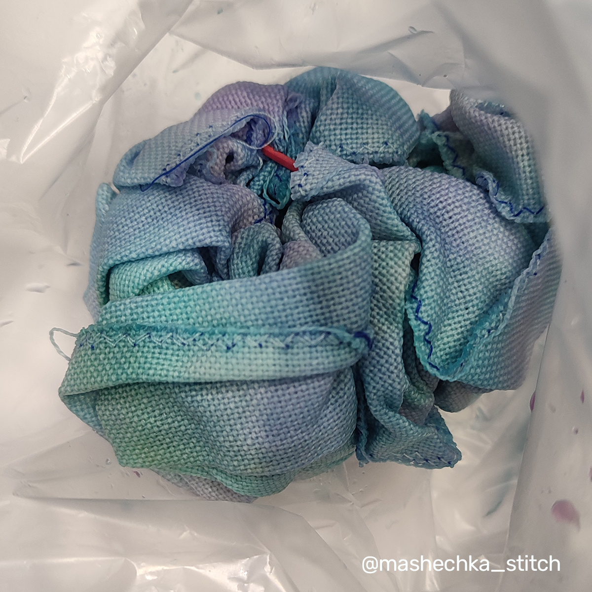 ❤️Перед экспериментами с ниточками мулине был ещё один — с равномеркой! Один из готовых экземпляров вы уже видели в посте про Лунного кота. Сегодня покажу подробнее, как рождалась эта ткань моей мечты. ❤️Сначала просто скрутила ткань и окрасила (ну как показывают в видосиках про тай-дай) — но результат меня не устроил. Получилось слишком много светлых проплешин, которые делают основу контрастной и мешают вышивать. На такой ткани сложно работать с многоцветными сюжетами, наверное, только одноцветная вышивка смотрелась бы хорошо. ❤️Решила, что ткань должна быть примерно одинаковой по тону. Взяла толстую кисть и вручную закрасила всю равномерку двумя цветами: синим и фиолетовым. Получилось глубокое сине-фиолетовое небо — идеальная основа для ночного котика! ❤️Не такой простой это оказался эксперимент! Только со второй попытки тканюшка была прокрашена именно так, как нужно. Это только в видосиках в интернете все так просто. А вы красили канву самостоятельно? Вышивали на основе ручного кр