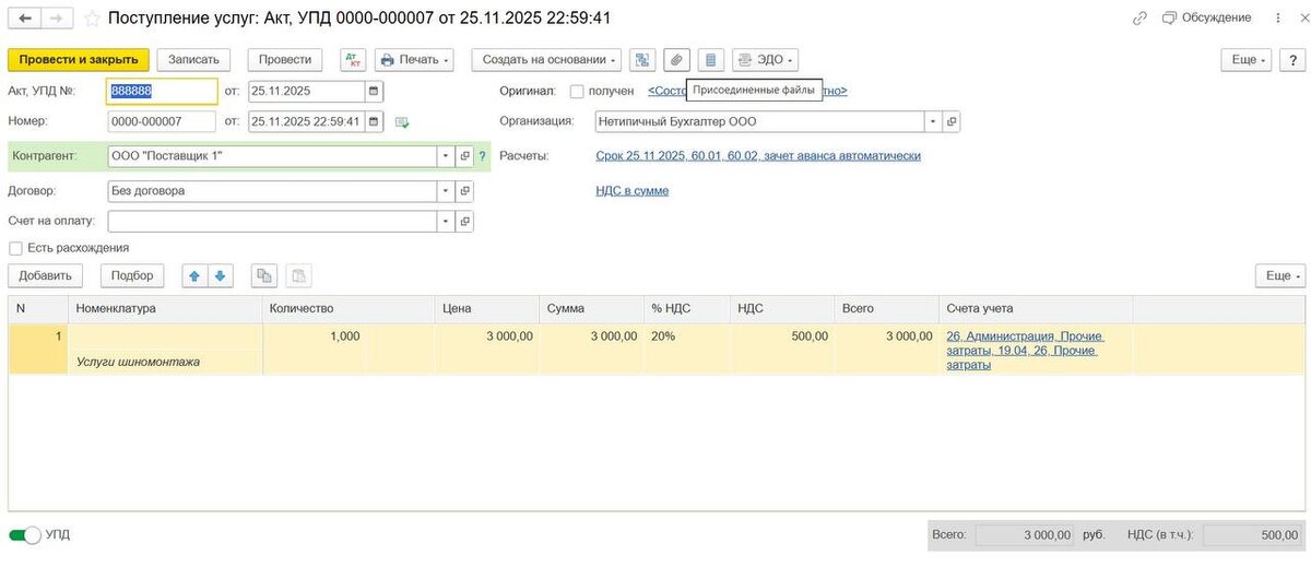Работа с первичными документами в 1С давно вышла за рамки простого ввода данных. Сегодня пользователям важно хранить сканы, электронные версии документов, передавать их коллегам и контрагентам, а также подписывать электронной подписью. В 1С:Бухгалтерии 8 редакции 3 такая возможность реализована напрямую в интерфейсе — файлы можно прикреплять к документам и справочникам и хранить их внутри базы данных. В этой статье рассказываем, как прикрепить внешний файл на примере документа «Поступление (акт, накладная, УПД)», и что важно учитывать при дальнейшей работе. Зачем прикреплять файлы в 1С Функция присоединённых файлов позволяет: хранить сканы первичных документов непосредственно в 1С; подписывать их электронной подписью — если настроены ЭДО и используются ЭЦП; быстро отправлять файлы по электронной почте прямо из программы; обеспечивать целостность документации внутри бухгалтерской базы. Это удобный инструмент, особенно если организация регулярно работает со сканами актов, накладных, дог