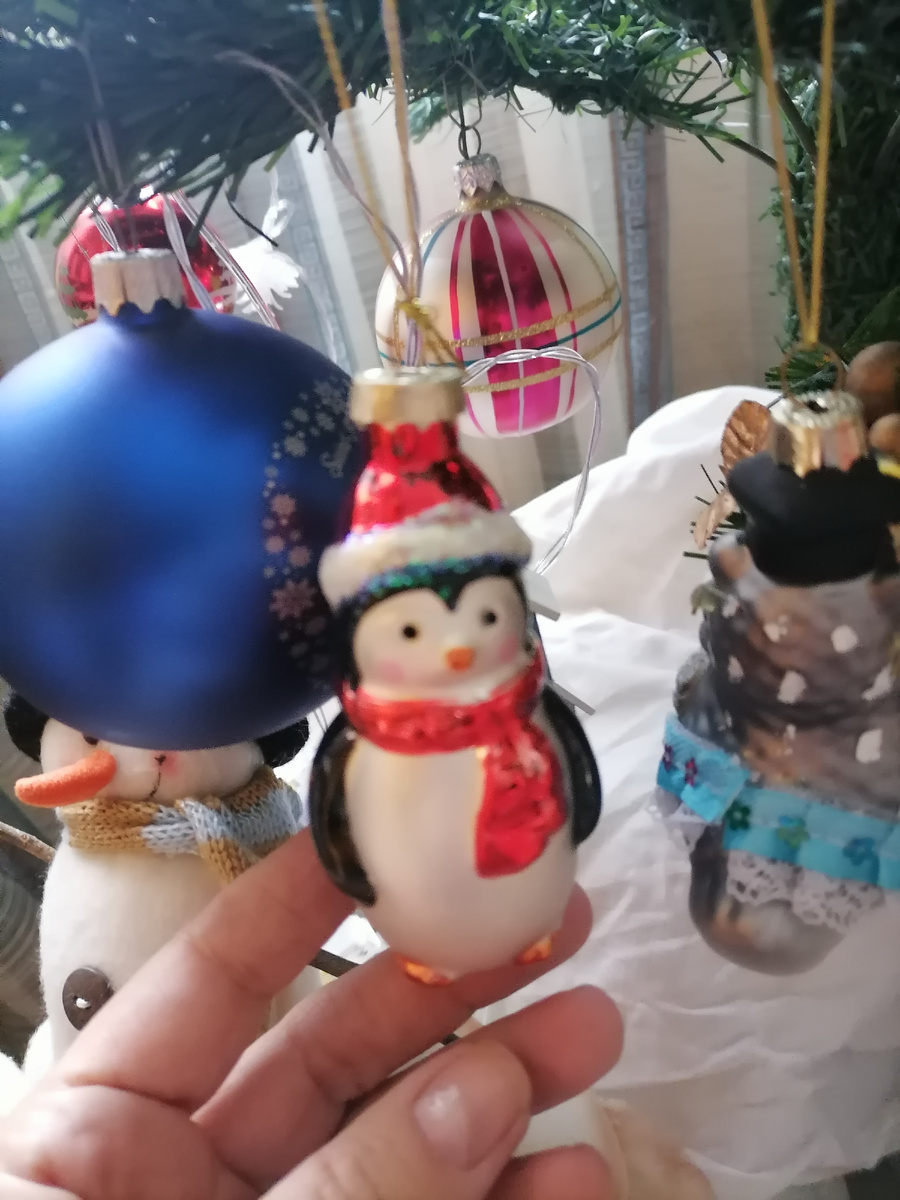 Всем здравствуйте! На все есть своя мода, и на украшения елок в том числе. И иногда даже очень красиво посмотреть, как украшают зеленых красавиц дизайнеры. Но лично мне это не подходит. За годы моей жизни я, как наверное и многие, обзавелась множеством новогодних игрушек, что-то осталось из моего детства, что-то мне подарили, что-то купила от большого желания или просто так. И все прекрасно уживается на одной елке- и винтаж и сегодняшняя покупка. Одно плохо- елка слишком мала и не все помещается. Вот пингвиненок, купленный на прошлой неделе, стекло. А этот шар приехал из Санкт-Петербурга. Вроде сувенир, но не обычный- украшение на елочку. Тоже стекло. А как было не купить такую милоту? Тоже стекло. А этого мальчика я помню еще из своего детства. Стекло. Даже прищепка поржавела с годами. И эта сова родом из СССР. Огурец тоже советских времен. Более современные шары, стекло. Капустка современная, стекло. И Дед Мороз винтажный. Купила на Авито несколько лет тому назад. Спаси
