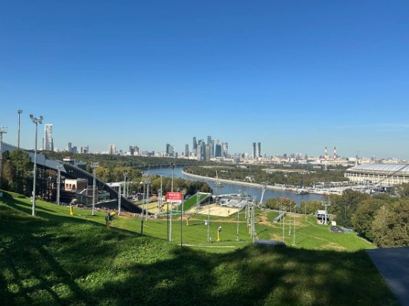 Во время деловой поездки в Москву, у нас с коллегой осталось немного свободного времени и мы решили прогуляться по Воробьевым горам. Красота вокруг, конечно необыкновенная, большое количество туристов и восхитительные виды на город, прогулка получилась отличная. Мы так увлеклись, что и не заметили, как прошалаги 15 000 шагов, Опомнились только когда часы прислали уведомление. Тут то резко и почувствовали не только усталось, но и урчание в животе со звуком "пора перекусить срочно!" Голод не тетка или ешь, что дают Ближе всего к нам оказалось кафе Board & Вилка, туда мы и направились. Уже на входе нам сказочно повезло, прямо на наших глазах освободился столик у панорамного окна и мы смогли за ним разместиться. Вид из окна открывается такой, что сначала просто дух захватывает - отлично видно Москву-реку и Лужники. Зал кафе оформлен современно, просторно и светло, людей в кафе было много, но нам это не помешало, между столиками приличное расстояние.