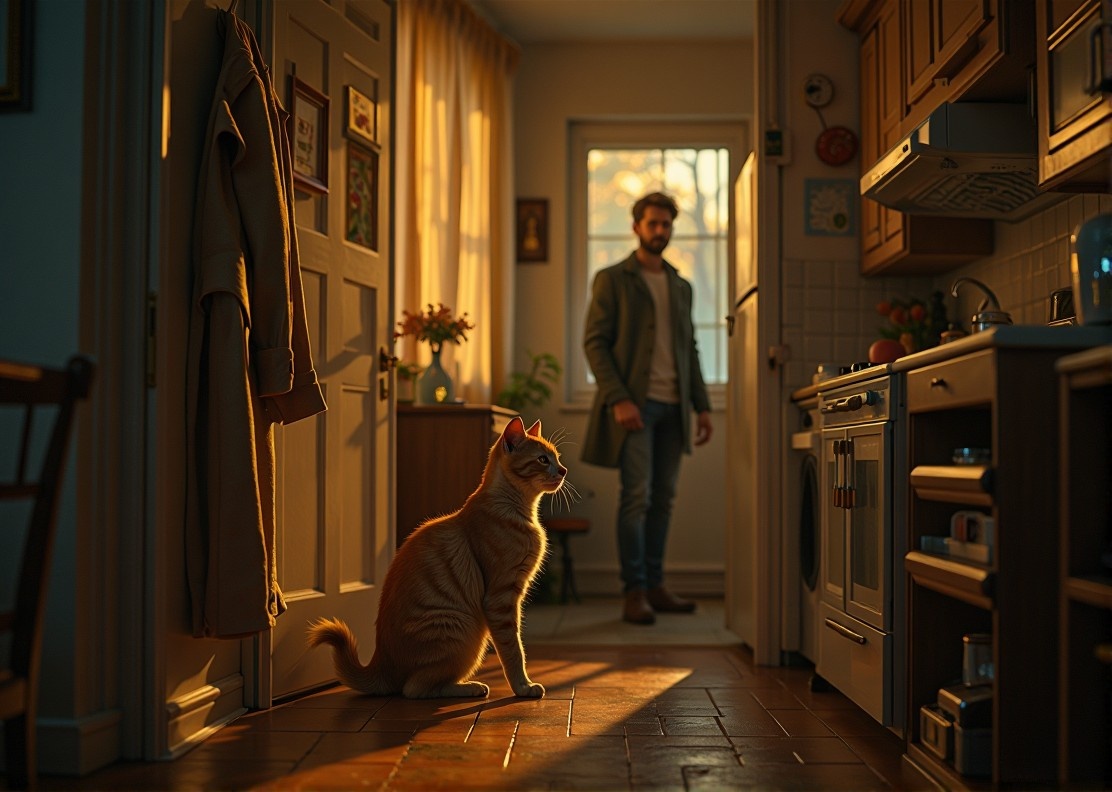 Вечером, когда ключ повернулся в замке, я уже ждал. Пальто намеренно снял и положил на стул в кухне — подальше от кота. Тот сидел у батареи, настороженный, но без паники.