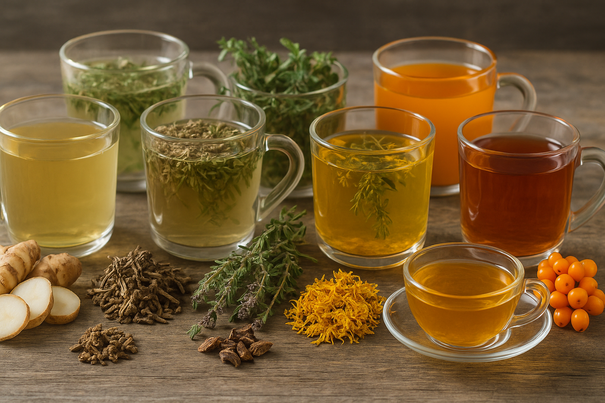 Эта девятка природных помощников — словно ваша личная команда поддержки: топинамбур мягко заряжает энергией, валериана и пустырник заботятся о нервной системе, чабрец бодрит, календула согревает солнечным светом, облепиха освежает и укрепляет, брусника дарит лесную прохладу, сабельник поддерживает суставы, а бессмертник защищает печень и иммунитет.