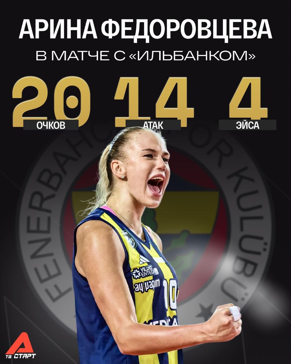 📜🔝 Арина вновь лучшая! В игре с «Ильбанком» Федоровцева набрала 20 очков и стала лучшей по результативности. Также она сохраняет первую строчку в бомбардирской гонке. Следим за Ариной на телеканалах «Старт» и платформе TVSTART.RU 🖥 Подписывайся на ТВ СТАРТ в MAX📲